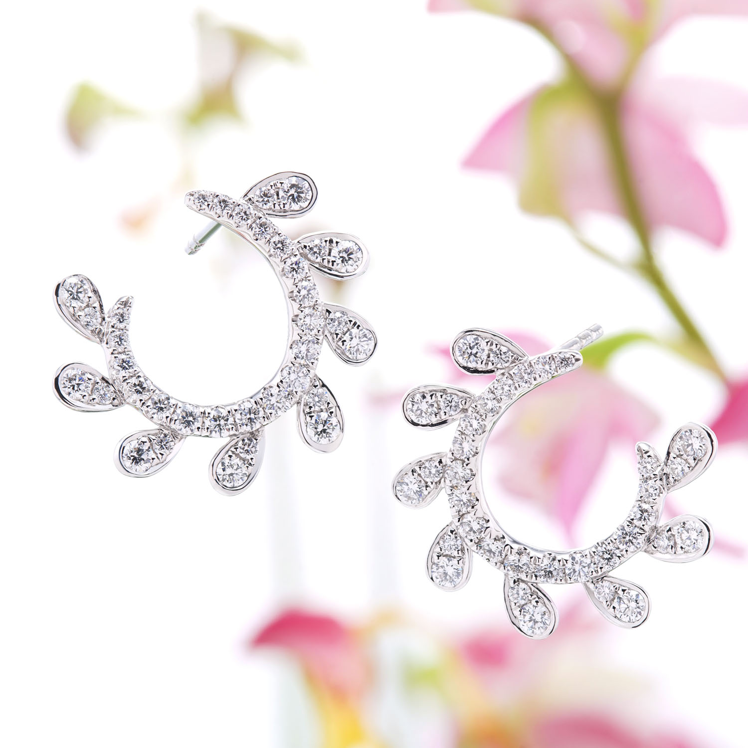 18K/750 白色黃金 天然鑽石鑲嵌 耳環 金重:3.70克 70粒 圓形 鑽石 總重量:0.71卡